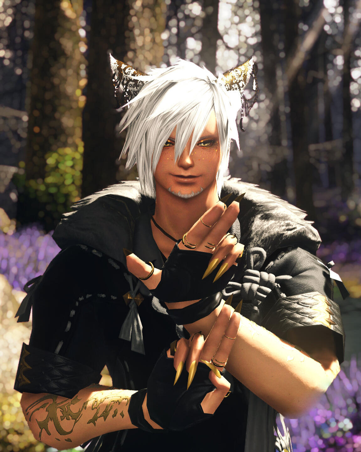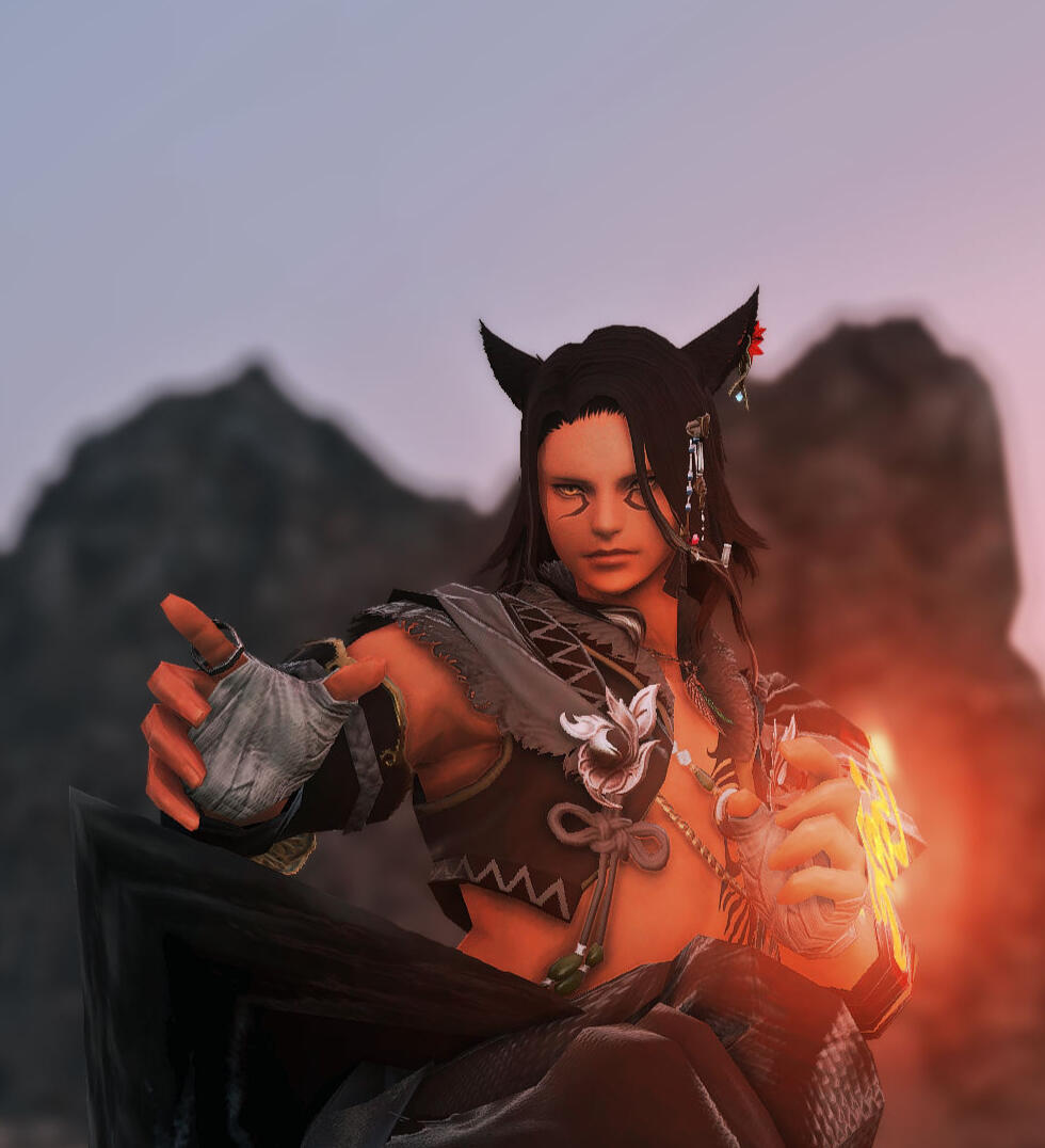 "I felt a rush of warm liquid wash over me. My nose was met with a sweet, sanguine smell. The rushing of the liquid grew louder. My sight was slowly being restored, and as my focus began to sharpen I found myself lying in a bed of flowers, rustling amidst a strong wind."The Miqo'te paused, his tone melancholic" The ground was cold, I was alone... and judging by the placement of the moon I’d guess it was around 3am. My body ached as if it had been under a great weight. I rolled to my side and uncurled my fingers...An orange feather. As I brought it closer to my face it turned black and crumbled into ash."