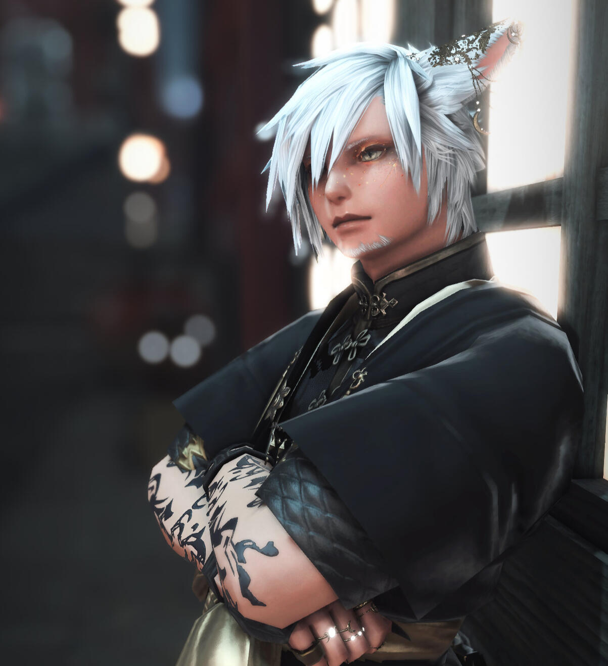 ⦾ Often found atop of busy city buildings in the evening, watching the night life and the stars.⦾ Little to no possessions due to being extremely transient⦾ Keeps a sachet of aromatic Steppe grass on him at all times, and thus has a lingering smell best described as campfire, cinnamon, and star anise.⦾ Picked up smoking after leaving the Steppes five years ago. "No one escapes death. Let me at least enjoy the ride there."⦾ Dark beer enjoyer, not so much for hard liquor⦾ While not ashamed of having been brought up by a Xaela tribe, it's a conversation he tends to avoid having with most outsiders. It sparks too many questions; and with questions, comes flooding memories.⦾ Occasionally some awkward cultural differences/inexperiences come into play (IE unfamiliar with guns, government regulations, etc). If something wasn't taught to him in the steppe, he is quick to try and adapt what is generally perceived as 'normal' for non-steppe residents.⦾ Genuinely gets no enjoyment from fighting and considers it a 'past life' hobby. If something can be settled by words or favours, he prefers doing so but will fight if it comes down to it.