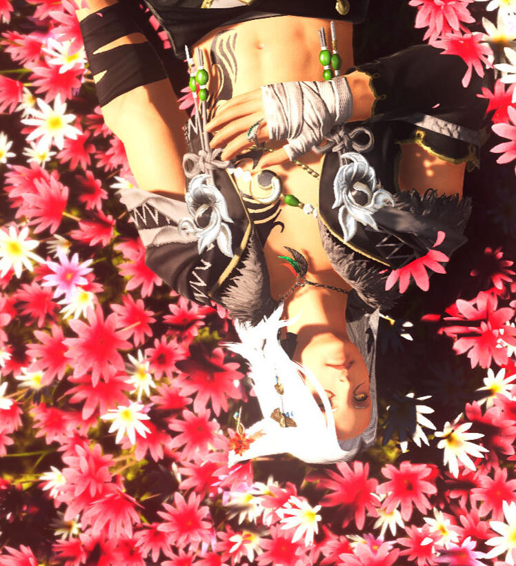 "I felt a rush of warm liquid wash over me. My nose was met with a sweet, sanguine smell. The rushing of the liquid grew louder. My sight was slowly being restored, and as my focus began to sharpen I found myself lying in a bed of flowers, rustling amidst a strong wind."The Miqo'te paused, his tone melancholic" The ground was cold, I was alone... and judging by the placement of the moon I’d guess it was around 3am. My body ached as if it had been under a great weight. I rolled to my side and uncurled my fingers...An orange feather. As I brought it closer to my face it turned black and crumbled into ash."